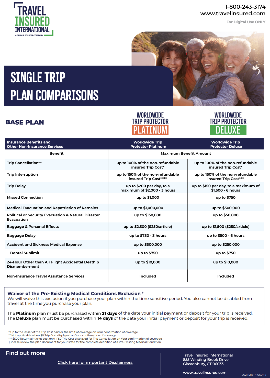 • Without insurance, there are no refunds should your plans change.